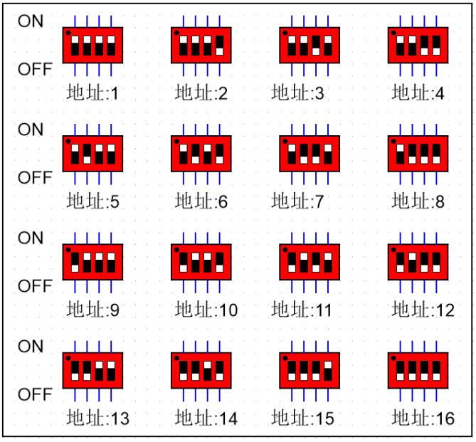 MODBUS 地址為板載撥碼開關 S1,用戶可根據(jù)實際情況選擇,