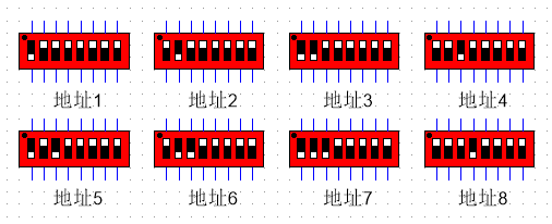 MODBUS地址為板載撥碼開關S1,共8位,從1#-128#,用戶可根據實際情況選擇,默認地址為1;如下所示: